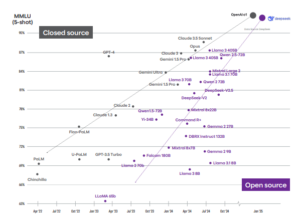2.ปัจจุบัน โมเดล AI แบบปิด (Close-Source) เช่น ChatGPT และ Claude ยังคงมีประสิทธิภาพสูงกว่าโมเดลแบบเปิด (Open-Source) เช่น Deepseek เนื่องจากได้รับการสนับสนุนด้านเงินทุนที่มากกว่า